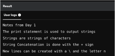 print(Notes from Day 1")